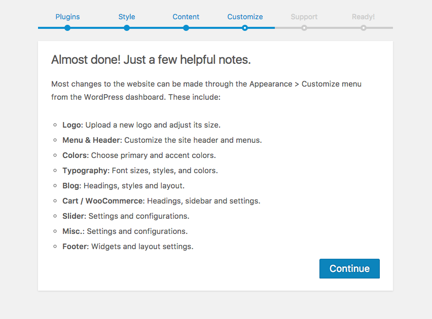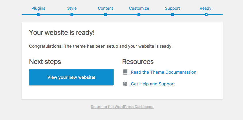 Congratulations! The theme has been setup and your website is ready.
